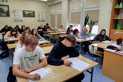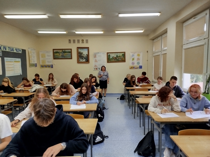 6 października 2025 roku w naszej szkole odbył się etap szkolny 50 Olimpiady Języka Angielskiego! Uczniowie zmierzyli się z wymagającymi zadaniami sprawdzającymi znajomość słownictwa, gramatyki i kultury krajów anglojęzycznych. Etap szkolny jest testem pisemnym. W trakcie dzisiejszego testu trwającego 45 minut uczniowie zmierzyli się z zestawem 45 zadań, obejmujących różnorodne aspekty języka angielskiego, w tym: test jednokrotnego wyboru, zadania ze słowotwórstwa, transformacje zdań, gramatykalizację oraz zagadki słowne. Do drugiego etapu (etapu online) przechodzą uczniowie, którzy uzyskają 20 pkt. z testu. Gratulujemy wszystkim uczestnikom odwagi i zaangażowania!