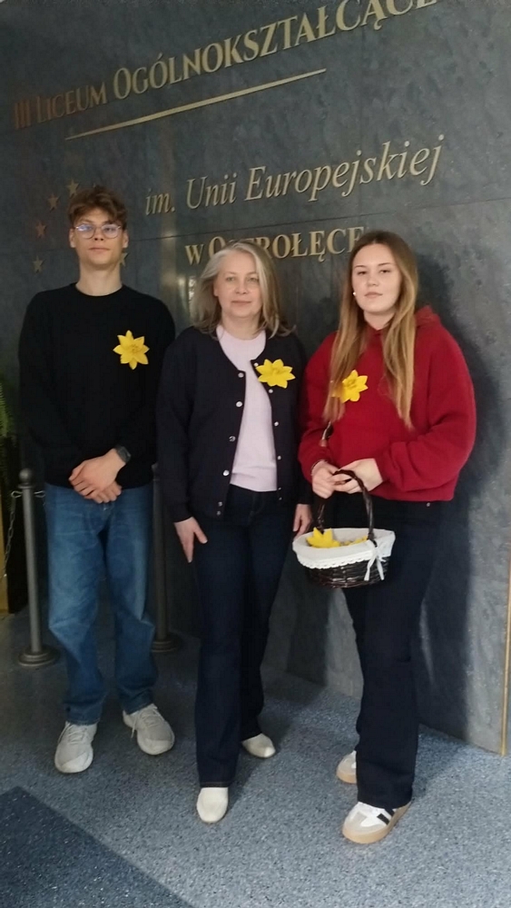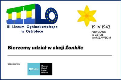 Po raz kolejny społeczność naszej szkoły włączyła się w ogólnopolską akcję „Żonkile”, organizowaną przez Muzeum Historii Żydów Polskich POLIN. Dnia 19 kwietnia obchodzona jest 83. rocznica powstania w getcie warszawskim – największego zbrojnego wystąpienia Żydów podczas II wojny światowej. Wydarzenie to stanowi jeden z najważniejszych symboli walki o godność i wolność w obliczu tragicznych doświadczeń okupacji. W celu upamiętnienia tej rocznicy uczniowie klasy III D przygotowali papierowe żonkile – symbol pamięci, szacunku oraz nadziei. Kwiaty te zostały przekazane uczniom oraz pracownikom szkoły jako wyraz wspólnego upamiętnienia ofiar i bohaterów powstania. Istotnym elementem obchodów są również lekcje tematyczne, które skłaniają uczniów do refleksji nad wydarzeniami historycznymi oraz pogłębiają wiedzę na temat powstania w getcie warszawskim. Akcji od początku towarzyszy hasło „Łączy nas pamięć”, które podkreśla znaczenie wspólnoty, solidarności oraz dialogu międzyludzkiego ponad wszelkimi podziałami. Koordynatorkami przedsięwzięcia były p. Dorota Antośkiewicz oraz p. Dorota Drężek