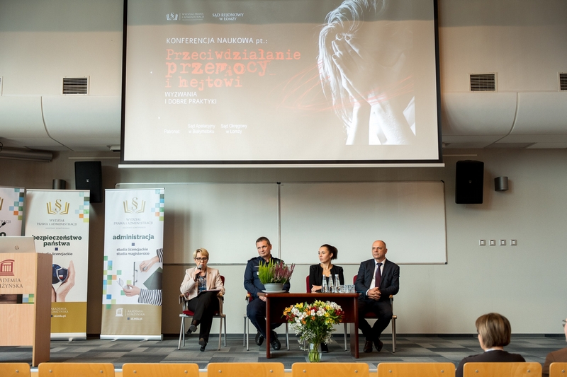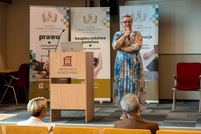 Dnia 17 października 2025 roku uczniowie klas IIA i IVE1 wraz z opiekunami udali się do Akademii Łomżyńskiej na konferencję na temat: „Przeciwdziałanie przemocy i hejtowi- wyzwania i dobre praktyki.” Młodzież naszej szkoły została zaproszona przez panią dr Ewę Jakubiak, która jest dziekanem Wydziału Prawa i Administracji Akademii Łomżyńskiej. Uczestnicy wysłuchali wykładów: „Rola grupy rówieśniczej w przeciwdziałaniu przemocy werbalnej w środowisku szkolnym”, „Hejt a odpowiedzialność prawna w nowoczesnych mediach- gdzie kończy się wolność słowa?”, „Studium przypadku: czy można zapobiegać hejtowi (w szkole, w przestrzeni publicznej?)”, „Ramy prawne przeciwdziałania przemocy w Polsce i UE”. Wykłady wygłosili: Gerard Bah, dr Klaudia Skelnik, dr Monika Surawska , dr Artur Śledziewski. Wśród zaproszonych gości byli Prezes Sądu Rejonowego w Łomży, SSR Ewa Kłapeć- Kalinowska, przedstawiciel Powiatowego Centrum Pomocy Rodzinie w Łomży, policjant, a także psycholog. Policja, sąd rodzinny, a także organizacje pomagające rodzinom współpracują, by zapewnić wsparcie ludziom doświadczającym przemocy. Eksperci przeprowadzili dyskusję panelową, podczas której uczniowie mogli zadać pytania. Młodzież dowiedziała się, jak przeciwdziałać przemocy, gdzie szukać pomocy i jak wspierać osoby, które doświadczyły hejtu. Opiekę nas uczniami sprawowały panie: Aldona Skała, Iwona Janus- Kojtek, Marta Zaborowska i Agnieszka Pokora. Bardzo dziękujemy Akademii Łomżyńskiej za zaproszenie i poruszenie bardzo ważnego tematu.