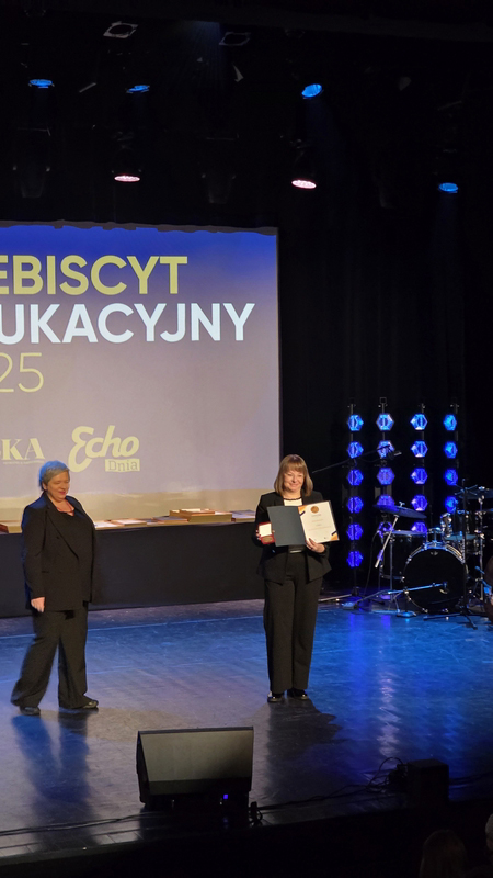 Z wielką dumą informujemy, że nauczycielka naszej szkoły, Pani Anna Gawrych, zdobyła I miejsce na szczeblu powiatowym w Plebiscycie Edukacyjnym 2025. To wyróżnienie jest wyrazem uznania dla Jej codziennej pracy, pasji i zaangażowania. Pani Ania jest osobą aktywną, otwartą i pełną energii, zawsze blisko uczniów – wspierającą, inspirującą i oddaną swojej misji. Plebiscyt Edukacyjny to inicjatywa, w której głos mają uczniowie, rodzice oraz cała społeczność lokalna. Tym bardziej cieszy fakt, że zaufanie i sympatia środowiska znalazły odzwierciedlenie w tak prestiżowym sukcesie. Uroczyste wręczenie medali oraz dyplomów odbyło się w Warszawie, w Domu Kultury KADR, podczas wyjątkowej gali podsumowującej plebiscyt. Serdecznie gratulujemy i życzymy kolejnych osiągnięć, nieustającej satysfakcji z pracy oraz wielu powodów do dumy!